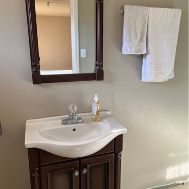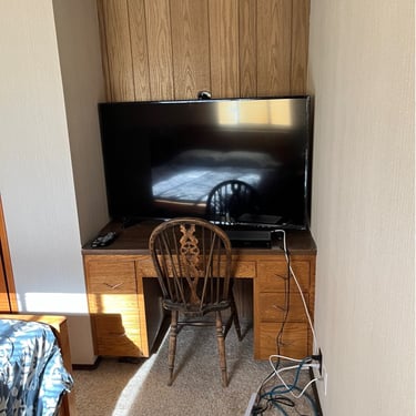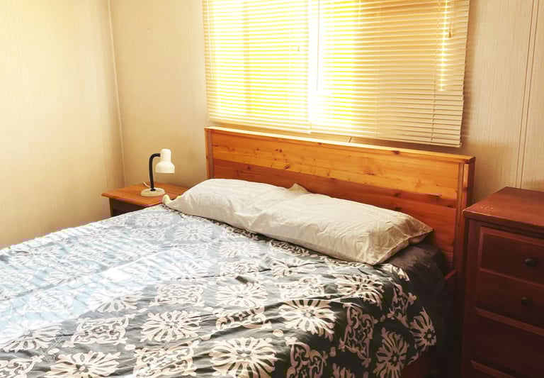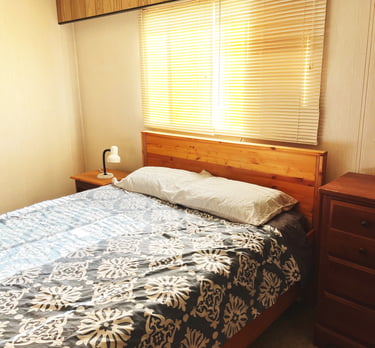 Fully furnished bedroom for rent with a private ensuite bathroom, office nook, TV, and WiFi. Enjoy shared access to the living space, laundry, and a spacious outdoor yard with a deck.